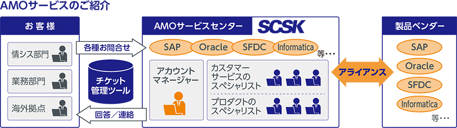 SCSKのAMOサービスは、SAPをはじめとする複数のアプリケーションの保守運用サービスを行っている。AMOサービス全体ではこれまでに約200件の保守運用実績を有し、SAPの認定技術者は500名以上在籍している。また、モリトの状態に合わせた柔軟な料金体系であることも特徴であり、必要になったときに、必要なアドバイスや開発支援を受けられるため、無駄がなく保守運用コストの削減にもつながる。