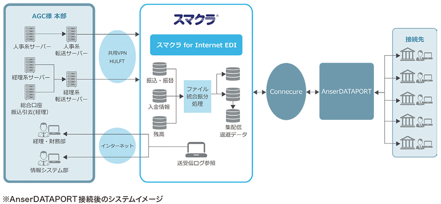 AGCは2024年1月のISDN回線のサービス終了に伴い、近いうちに閉域網を利用した金融機関向けデータ伝送サービス(AnserDATAPORT)へ移行する予定だが、その際にも 「スマクラ for Internet EDI AnserDATAPORT接続サービス」を利用する。このほか、受発注データのEDI連携をスマクラで行うことも検討中だ。