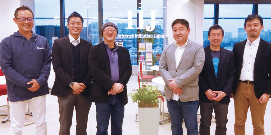 左からSCSK 姜(きょう)、SCSK 川杉、IIJ 田口 氏、IIJ 牧野 氏、SCSK 石川、SCSK 奥