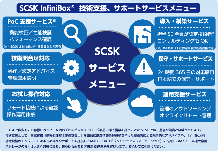 NTTコミュニケーションズ様にはInfiniBox®の採用後、実際の稼働に至るまで導入、設定を筆頭に技術支援をフルに対応させていただきました。NTTコミュニケーションズ様はストレージに対するご用件として膨大なデータを不停止で、一切取りこぼしなく記録する性能のご要求など、困難な課題がありましたがInfiniBox®がそれらを全て満たし、現在も業務に影響を及ぼすトラブルが発生せず、高い評価をいただいている点、大変うれしく思っております。今後もSCSKとしてINFINIDAT社と共に技術支援を喜んで対応させていただきます。