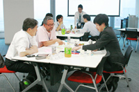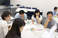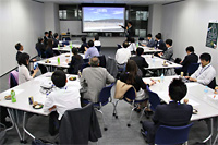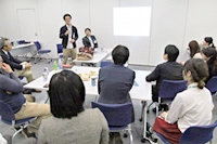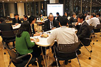 2013年11月は、社外の有識者をお招きして、対話形式でSCSKの環境問題への取り組みを共有し、社会の環境負荷を低減させる事業活動の可能性について議論しました。ワークショップでは、SCSKが取り組むべき環境ビジネスについて意見を出し合いました。
