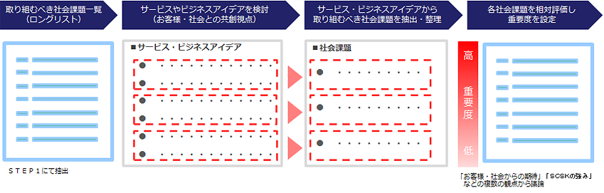 取り組むべき社会課題を抽出。(お客様との共創、社会との共創視点)