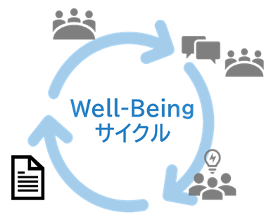 私たちは、Well-Being経営の実践を通して、個人と組織と社会がともに成長する未来を描いています。社員一人ひとりがWell-Beingの価値観と指標を理解し実践することは、社員のさらなるエンゲージメントを高め、主体的な貢献意欲を醸成し、企業の価値創出の原動力となり、ITの力で社会のWell-Beingを高める好循環を生み出してまいります。