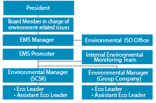 An environmental management promotion structure, in which the whole Group comes together as one, has been built under the President and the Executive Vice President.