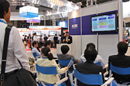展示ブース 展示会場では、「『夢ある未来を、共に創る』 ICTで、支えるのは『人』です―次世代に繋ぐ価値を共に創造するみなさまをICTの活用で支援します―」をテーマに、SCSKが提案する製品・サービスの数々を展示ブースでご紹介し、デモンストレーションを交えて体験いただきました。また、ブース内にてミニセミナーを開催し、SCSKがお勧めする最新ソリューションについて詳細にご説明しました。