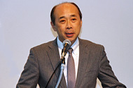 本フォーラムの特別講演として、メカデザイナーでありビジョンクリエイター、そしてアニメ監督でもある河森様にご登壇いただき、『空想デザインは可変する』と題し、河森様の豊富なご実績の一端から、さまざまな空想デザインの実例をご説明いただくとともに、原作・シリーズ構成・メインメカデザインまでをご自身で手掛けられる最新作「ノブナガ ザ・フール」についてご紹介いただきました。