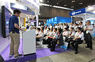展示ブース ヤマハ/SCSKブースでは、企業で多くの導入実績があり、ローエンドルーター市場シェア1位のヤマハネットワーク製品をご紹介するとともに、ヤマハソリューションによりネットワーク管理者の運用負荷を軽減し、安心して利用できる社内ネットワークをご提案しました。あわせて、「RTX1200」の後継モデルとして2014年11月に新発売するギガアクセスVPNルーター「RTX1210」と、ファイアウォール「FWX120」へ新しく追加販売されるオプション機能「メールセキュリティー機能」についてご紹介しました。