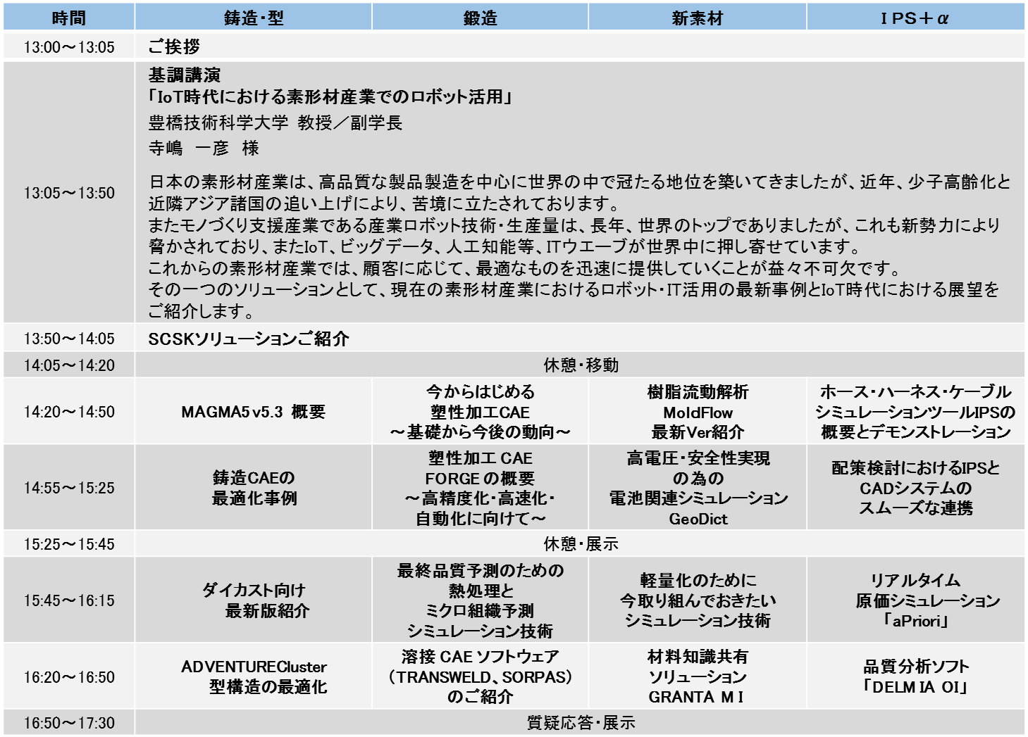 今年度からは「SCSKモノづくりCAEセミナー2017」と名称を変更し、モノづくりに関わる皆様に有益な情報をお伝えする場として日本全国で開催する予定でございます。