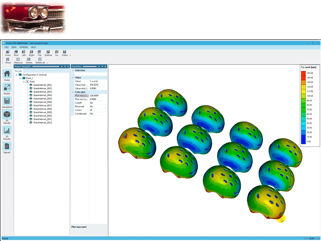 メッキ加工プロセスをシミュレーションし、部品に対する詳細な膜厚や品質評価を加工プロセスごとに得ることが可能です。