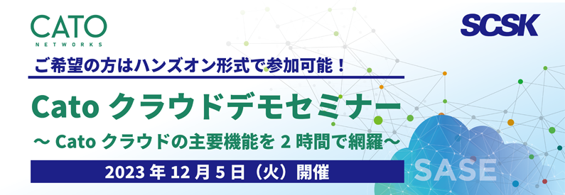 本セミナーでは、世界初のSASEである「Catoクラウド」の概要をたっぷり2時間、デモ形式でご覧いただきます。