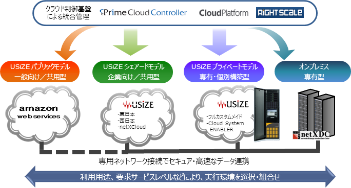 「Cloud System ENABLER」は、あらかじめハイブリッドクラウドで使用することを想定し、「Apache CloudStack(アパッチ クラウドスタック)」の商用版である「Citrix CloudPlatform」を活用したオープンなアーキテクチャでデザインされており、RightScale(ライトスケール)社のクラウド管理サービスや弊社製品である「PrimeCloud Controller(プライムクラウド コントローラ)」などのハイブリッドクラウド管理システムとの連携※3が実証済みです。一つのクラウド環境にとらわれない、拡張性の確保とシステムの最適配置を同時に実現します。