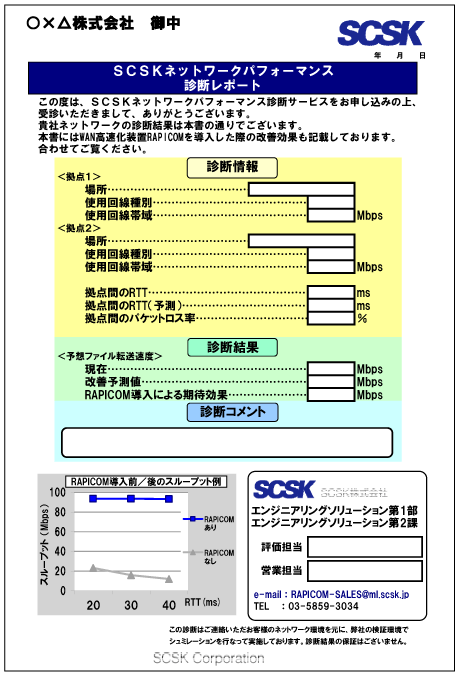診断レポートでは、WAN高速化装置「RAPICOM」を用いた場合の改善も報告
