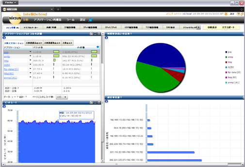 1Uサイズミニラックマウントサイズ重量 5.8キログラム 電源 100-240V 2A (AC電源) キャプチャI/F 100/1000Base-TX 1ポート 管理用I/F 100/1000Base-TX 1ポート 「NIKSUN IntelliDefend®-430HRモデル」 画面イメージ