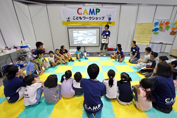 開催期間中、CAMPブースでは電池式の小さなコンピューター「クリケット」を使った「動く未来の乗り物」のおもちゃづくりを、次代のモノづくりを支える小さなエンジニアたちに体験していただきました。