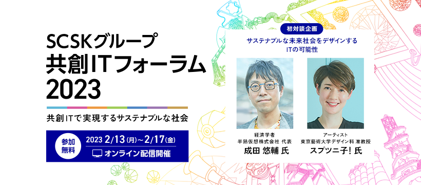 SCSKグループは、2023年2月13日(月)~2月17日(金)に「SCSKグループ共創ITフォーラム2023」をオンライン形式で開催いたします。
