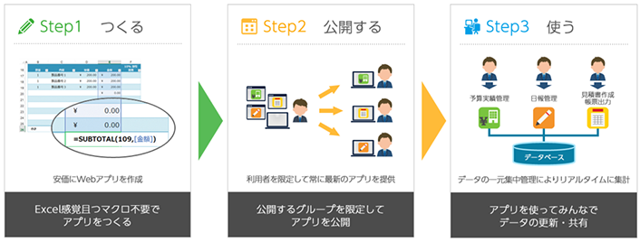 個別アプリをSI業者に依頼すれば高額な 開発費や保守費が発生する上に、追加開発のたびにさらなる投資が必要になる。また、Excelなどで管理する場合も、シートを変更されたり想定外の入力や記入漏れが発生したりするほか、マクロ技術者の不足、ファイルの散乱による内部統制上の課題や情報漏えいのリスクなど課題を抱えることになる。