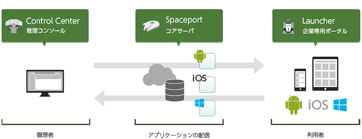 図2 Appsnautは企業内で利用するスマートデバイスに社内業務アプリケーションをインストールする際の、