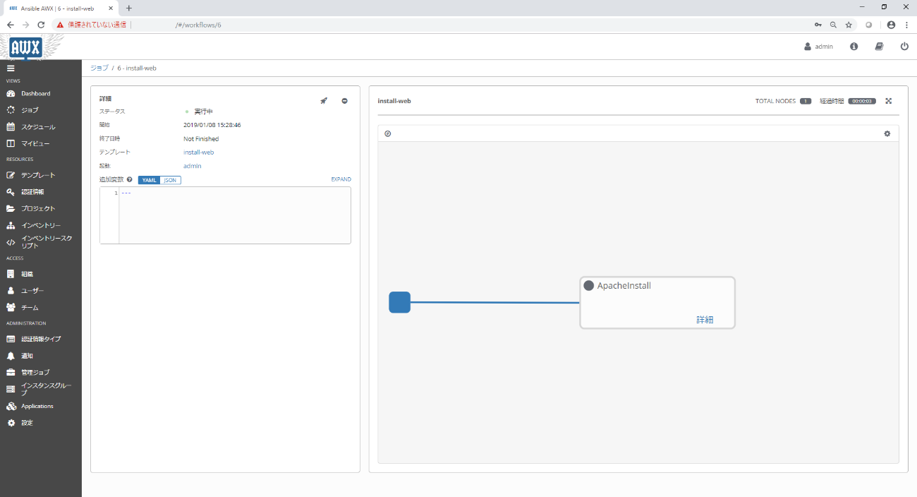 | Workflow Visualizer画面 | テンプレート名 | ApacheInstall |