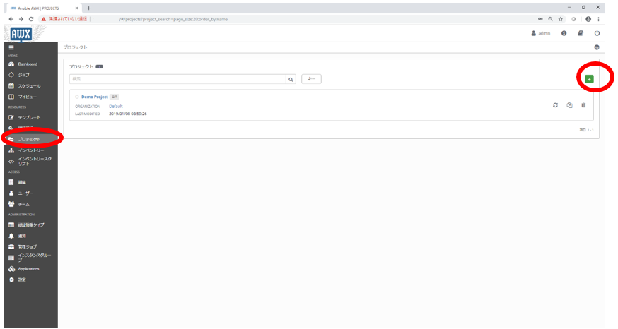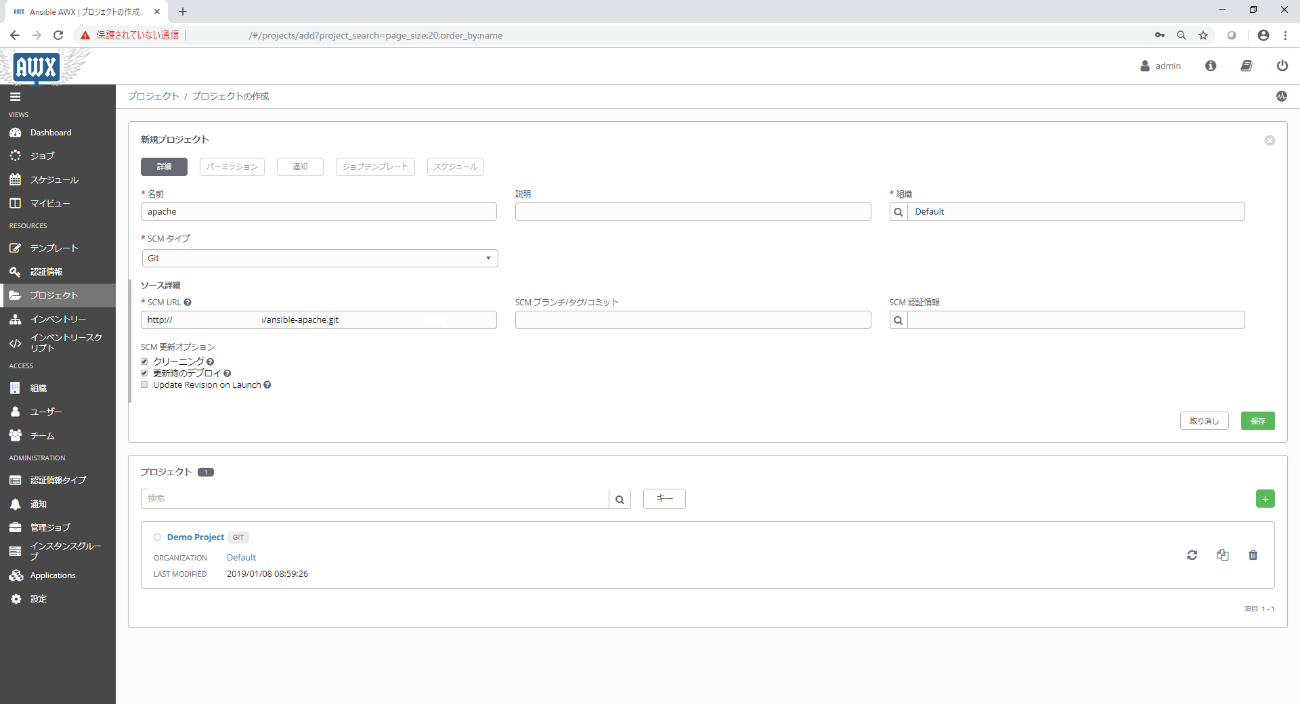 AWXではPlaybookの作成や管理の機能を持っていないため、使用したいPlaybookがどこに存在しているかを認識させる設定を行う必要があります。