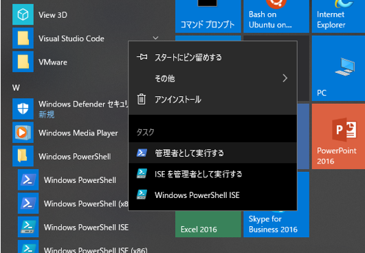 ① PowerShellを管理者権限で起動します