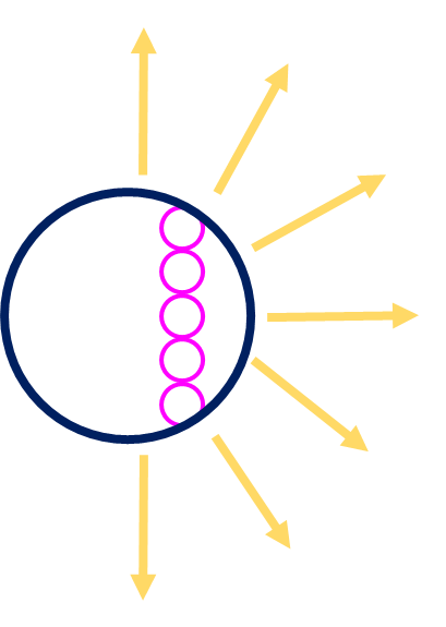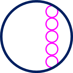 紺の円がライントレーサー本体を表し、ピンクの円は線上にいるかどうかを判断するためのセンサーを表しています。