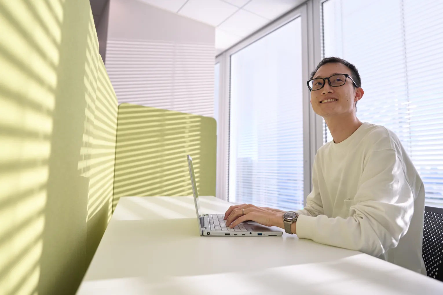 現在はDataSpiderというミドルウェア製品の担当エンジニアとして、顧客先に常駐し、DataSpiderの設計に従事しています。DataSpiderは企業の情報システムが利用している異なる形式のデータ連携を実現するいわゆるEAIツールで、ERPシステムの刷新時などに大きな力を発揮します。私はこの製品のスペシャリストとして業務にあたっているため、要求レベルは当然高く、製品仕様に関する質問や、製品を用いたソリューションについての回答にも大きな責任が伴っていることを感じます。また、そうした緊張感のなかで顧客と近い位置で仕事を進めることが、自身の成長につながっていると思います。常駐の面白い点は、他社の雰囲気や社風を学べることです。他社のいい面や見習うべきビジネス慣習を吸収して、SCSK社内に展開したいと意気込んでいます。