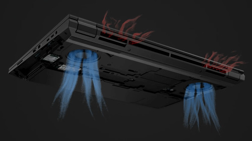 液体を気化させてGPUやCPUからの熱伝導を促進し、チャンバー内に分散させて冷却を最適化するベイパーチャンバー(放熱部品)、極めて薄い液晶ポリマー製のファンと2面の通気孔により、これまでで最も高性能な冷却ソリューション、より効率的な電力消費と分配のために、使用中のアプリに応じて電力を検出し、関連するコンポーネントに分配するBIOSレベルの革新などにより、冷却性能、静音性とシステム性能を状況に応じて最適化します。