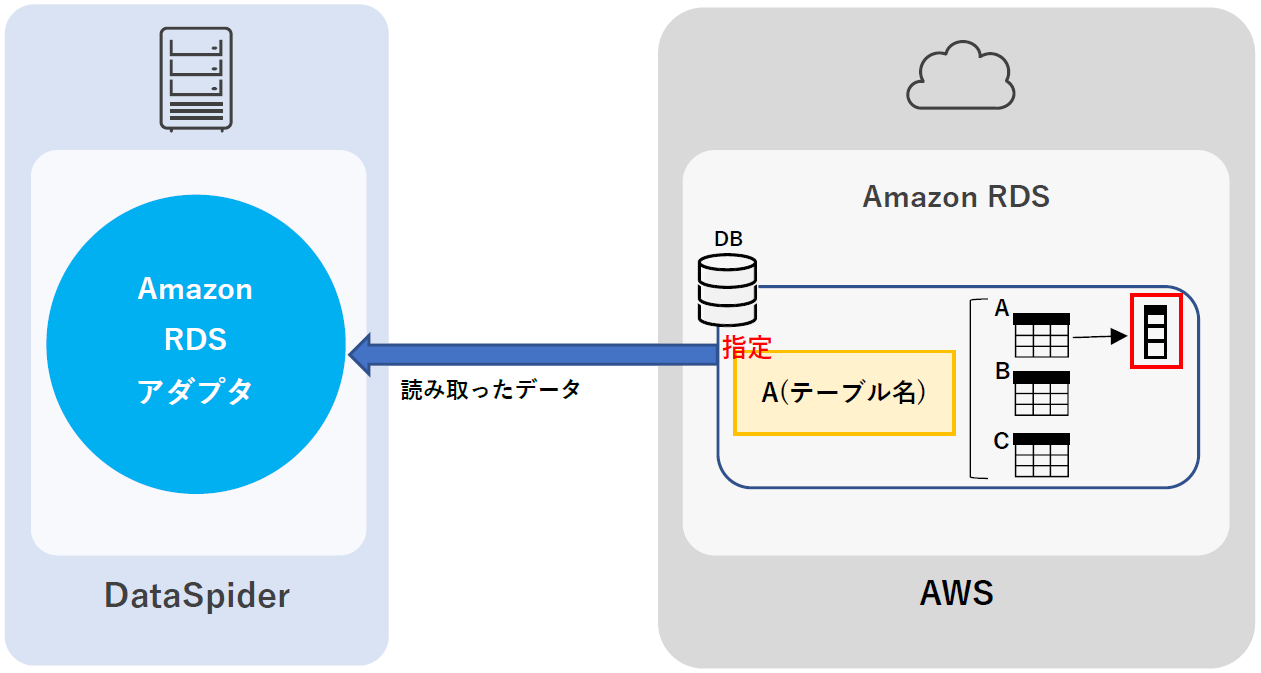 Amazon RDS for MySQL上にあるデータを読み取るには、[テーブル読み取り]アイコンを使用します。