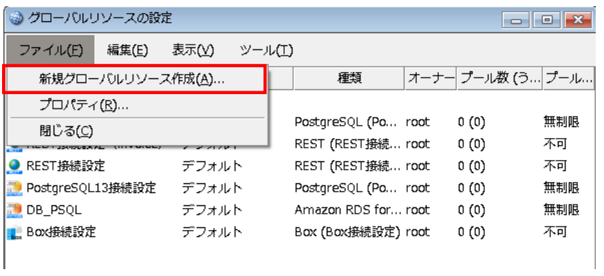 メニューの[ファイル] - [新規グローバルリソース作成]を選択します。