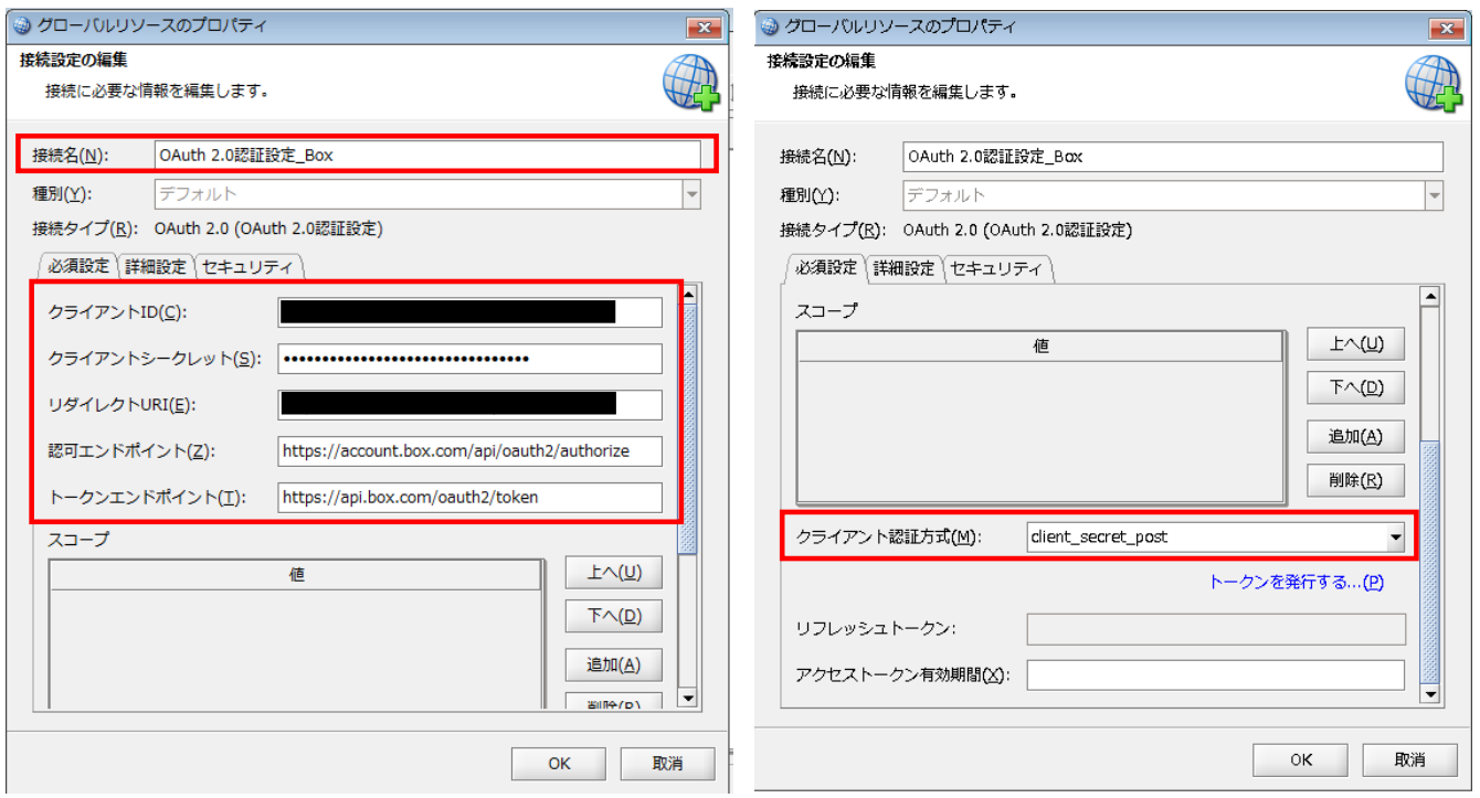 OAuth認証を設定し、データアップロード先であるBoxへのアクセス権限の許可を行います。