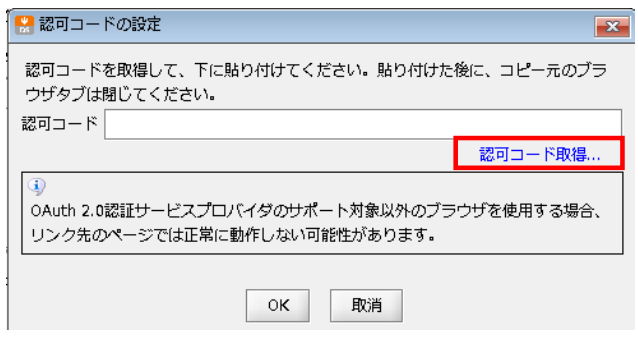 「認可コードの設定」ダイアログが起動したら、[認可コード取得]を押下します。