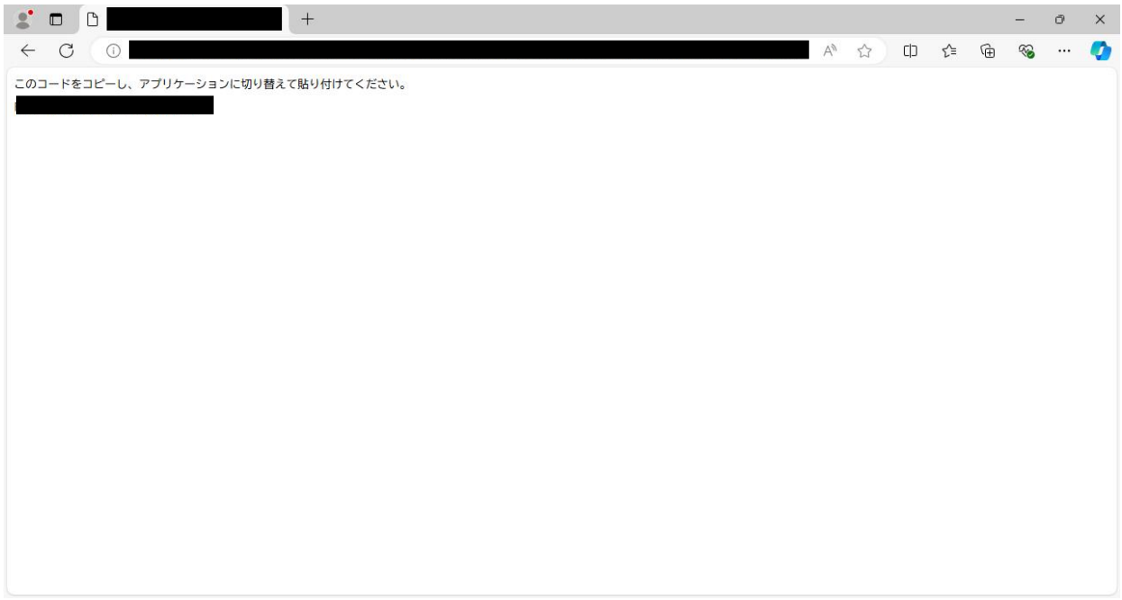 認証コードページが表示されるので、認可コードをコピーし、ページを閉じます。