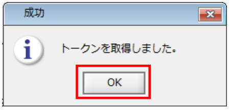 「トークンを取得しました。」のダイアログが表示されたら取得成功です。