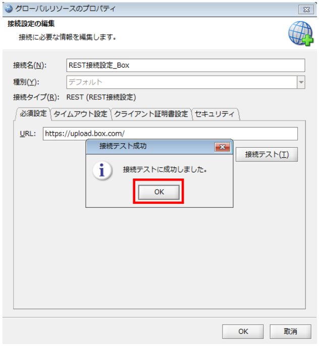 「接続に成功しました。」のダイアログが表示されたら[OK]を押下します。
