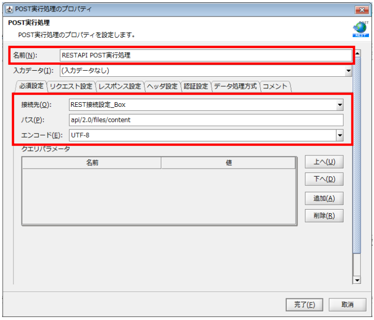 BoxへCSVファイルをアップロードするために、「POST実行」の設定を行います。