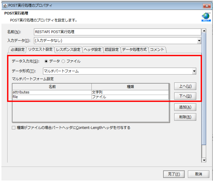 [マルチパートフォーム設定]:リクエストボディとなるマルチパートを設定