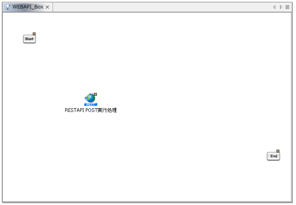 [完了]を押下すると、プロパティ設定ダイアログが閉じ、「RESTAPI POST実行処理」アイコンがキャンパスに配置されます。