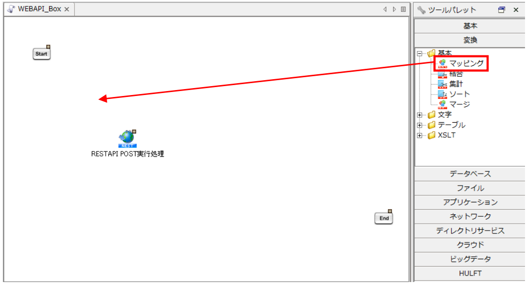 ツールパレットから[変換] - [基本] - [マッピング]をスクリプトキャンバスにドラッグ&ドロップします。