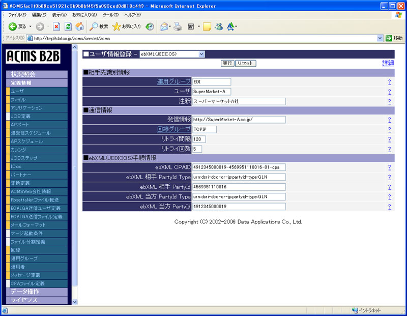 取引先とのデータ交換に対応させてジョブの実行管理を行うことができます。ジョブを複数のアプリケーションから構成することにより一連のビジネス・プロセスを実行することができます。 また、標準提供のデータ変換や分割・マージなどのデータ加工用アプリケーションをジョブ内に組み込むことにより基本的なビジネス・プロセスを容易に定義することができます。
