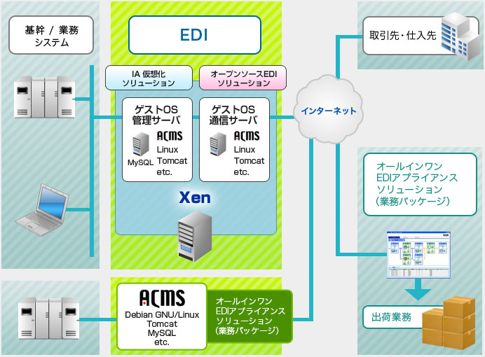 流行のIAサーバ+仮想化の技術を使用して、セキュアで障害に強いEDIシリーズをリーズナブルに実現します。