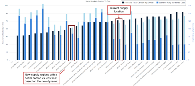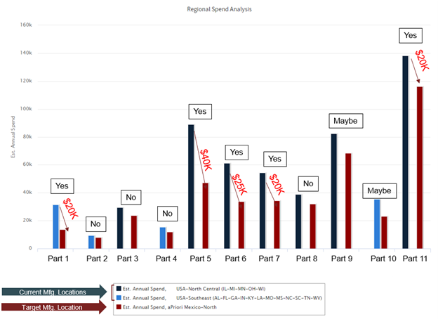 aPrioriのマトリックス分析は、メキシコでの25%関税を考慮した上で、コストをシミュレートします。