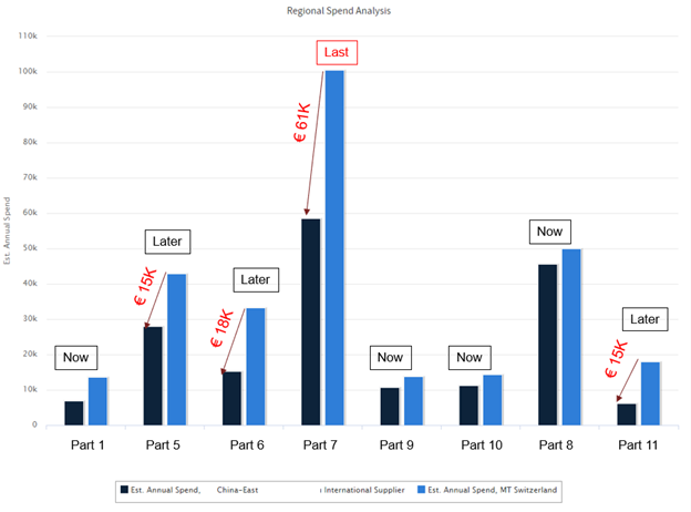 生産拠点移転に伴う経済的影響が最も少ない、または最大利益を得られる部品と、コストが高くつく部品を特定します。あるいは、部品製造に熟練度がそれほど高くない部品を選定します。熟練度が高い部品の一例はアセンブリにおける手動溶接や、多くのCNC加工を要するもの、等です。