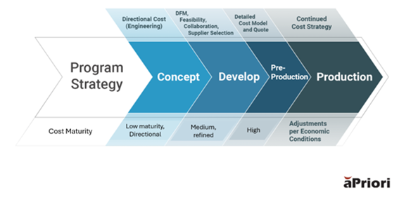 aPrioriは、製品開発におけるコスト成熟度向上を支援する統合プラットフォームです。 各段階でどのように貢献できるかを紹介します。