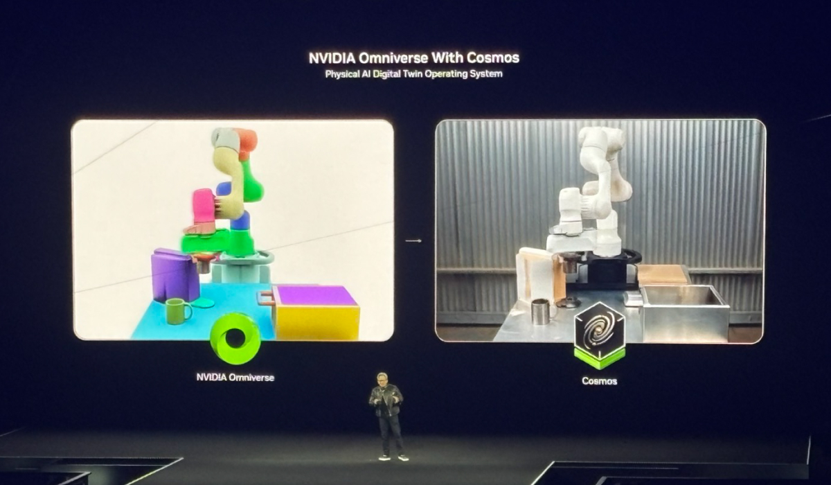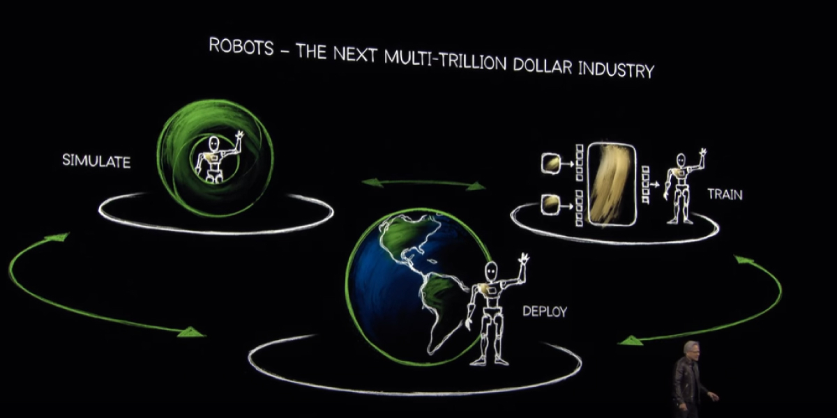 人手不足が深刻な問題となる中、NVIDIA社は未来の労働力となる汎用ロボットおよびヒューマノイドロボットの実用化にも注力しています。上述のAIの進歩により、AIは人間の意図を理解して自律的に推論し、デジタルにおける多くの問題に対処できるようになりました。しかしロボティクスを推し進めるにはそれだけでは足りません。デジタル上ではなく3Dの現実世界において、物理的に自らを制御し、動作できるような「フィジカルAI」が必要です。