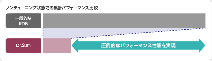 Dr.Sumなら、BIツールにありがちな難解な階層設計やキューブ設計は不要です。独自開発された高速データベースエンジンにより、どのようなリクエストにも瞬時のレスポンスが可能となるため、ユーザーはストレスを感じることなく集計・分析を行い、スピーディに意志決定ができます。