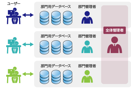 Dr.Sumは、多階層・多段階のセキュリティレベルに対応したきめ細かなユーザー管理によってセキュアなBI環境を提供できます。部門ごとに管理者を設定することもでき、グループ企業での共同利用やセキュリティレベルの高い運用にも対応可能です。