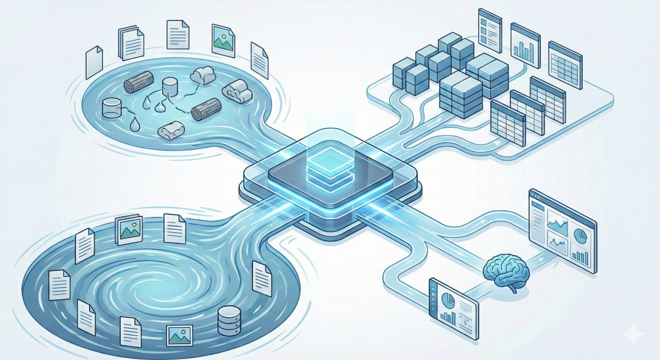 多くの企業はこれらを並立させていましたが、結果として「データの二重管理」「データ移動のコスト」「整合性の不一致」という大きな壁にぶつかっていました。
