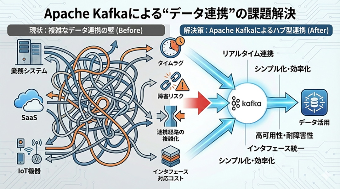 上記課題を解決するために、Apache Kafkaが有効です。