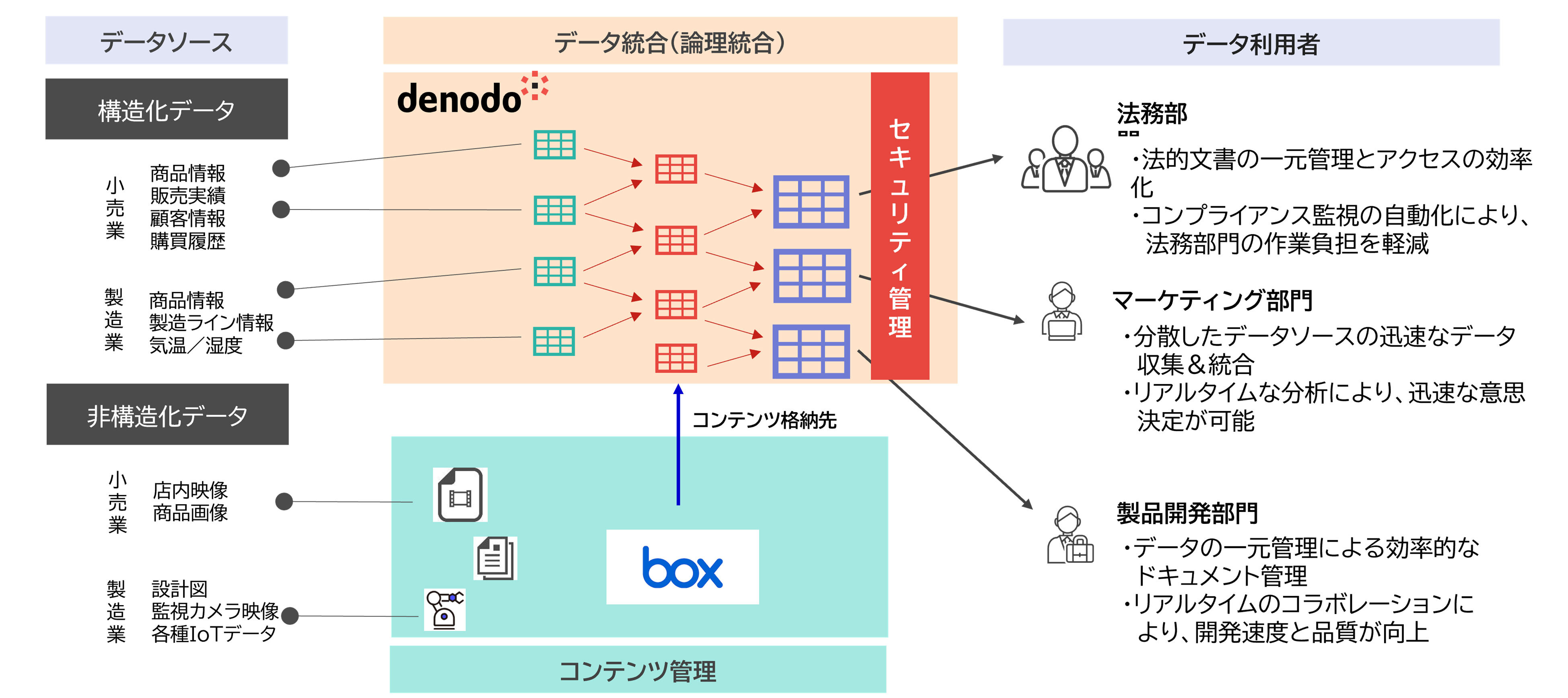 この課題を解決するのが、DenodoとBoxを組み合わせたアーキテクチャです。