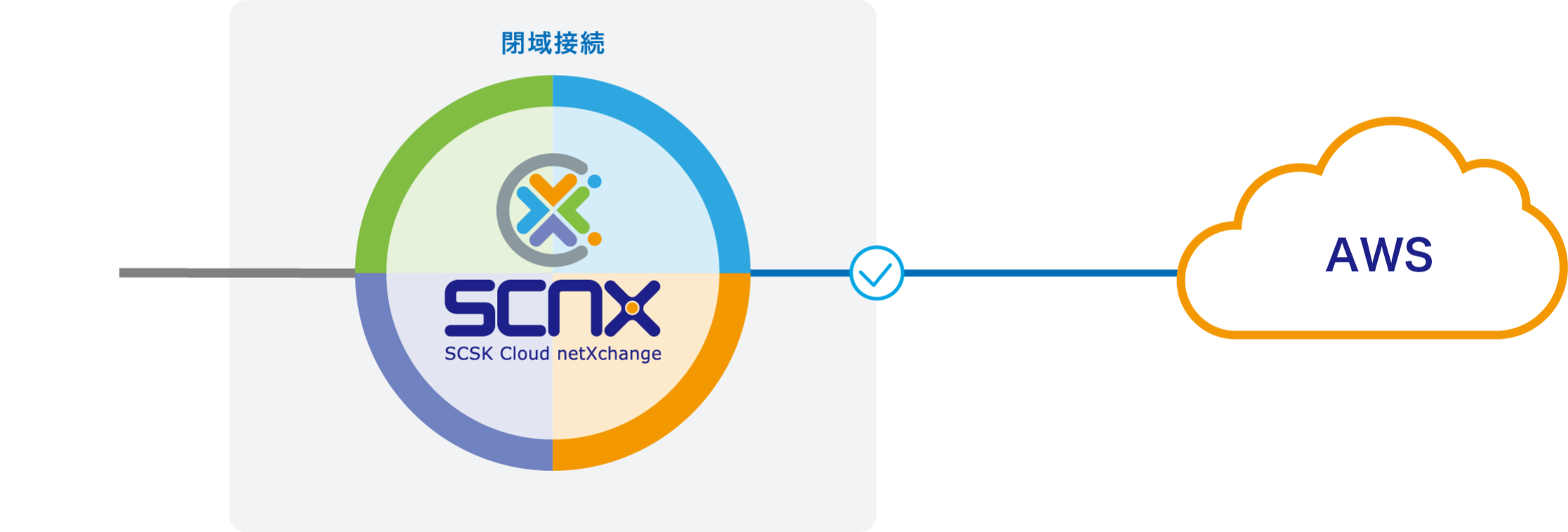 SCSKは、AWSとオンプレミスのインフラストラクチャ間でプライベート接続を実現するAWS Direct Connectの提供パートナーです。マルチクラウド接続サービスSCNXのラインナップの⼀つとして、印⻄キャンパス内にある接続点からAWSへセキュアかつ低遅延で接続できる「SCNX for AWS」を提供しています。